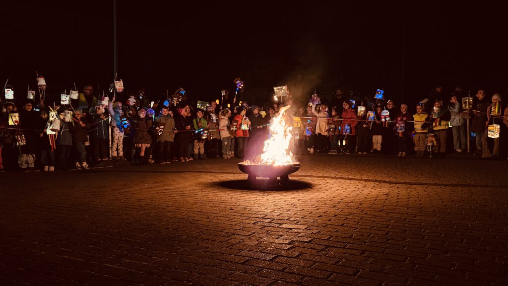 In der letzten Woche fand wieder unser Martinsfest satt. Viele bunt leuchtende Laternen und strahlende Kinderaugen zogen musikalische begleitet durch die Siedlung. Aus organisatorischen Gründen musste der Zugweg leider kurzfristig geändert werden. Im Anschluss wurde am Martinsfeuer noch gemeinsam gesungen und von Kindern aus der 3a das Martinsspiel aufgeführt. Der Förderverein hat durch eine stimmungsvolle Gestaltung des Schulhofes und mit warmen Getränken und Würstchen vom Grill das Fest abgerundet.